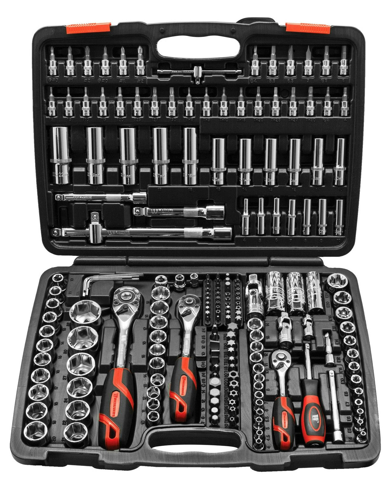 Dugókulcs készlet 1/4" - 1/2" - 3/8"-os - 6 lap fejű, 191 darabos készletben, erős Chrome-Vanádium acélból készült, skót ipari minőség.
