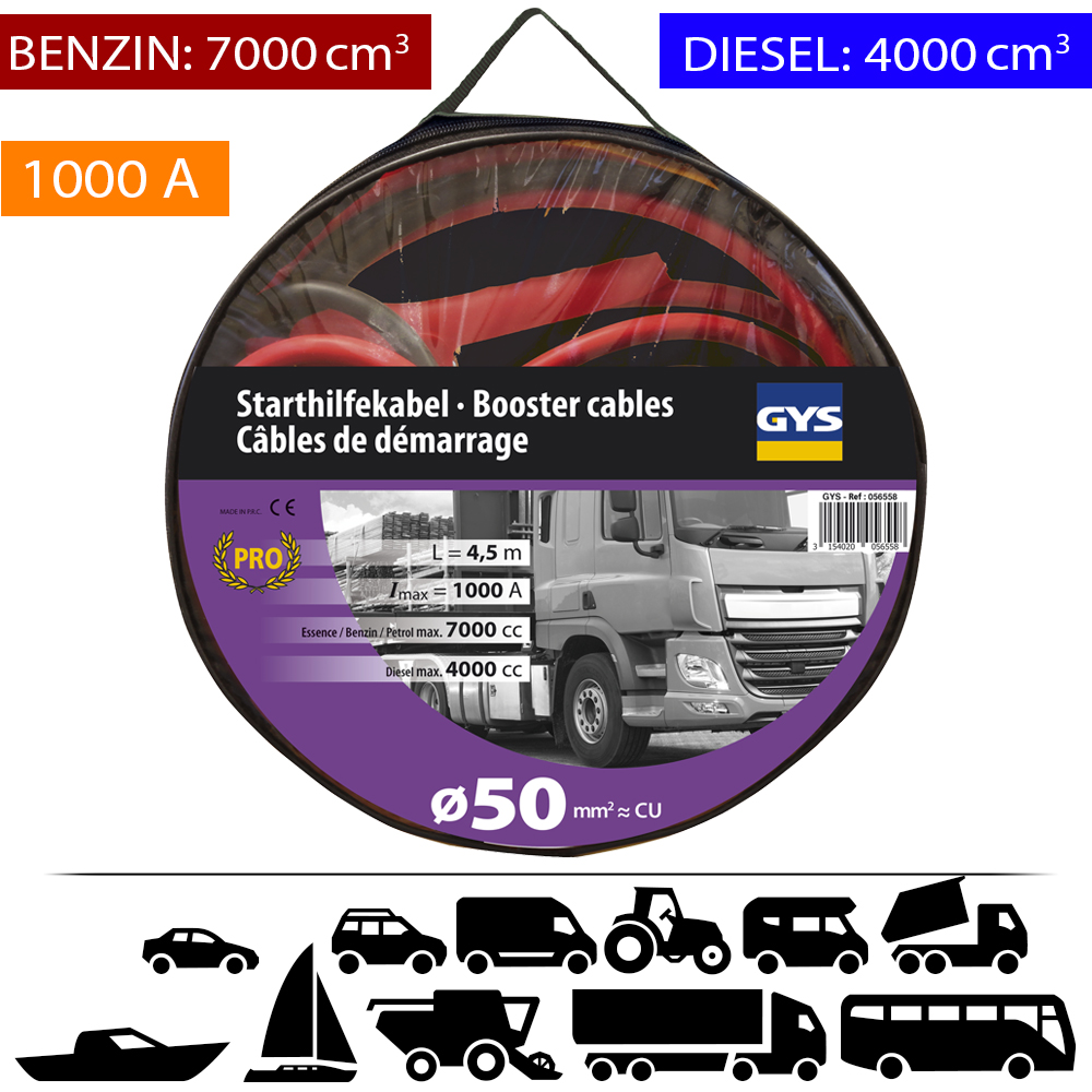 GYS Indítókábel, 1000A, 50mm2, 2x4.5m